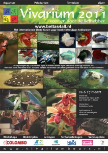 Met een oppervlakte van ~12000m2 en meer dan 8800 bezoekers, is de Vivarium beurs de “place to be” voor aquarium, paludarium, terrarium en vijver hobbyisten. We waren trots om twee prototypen te presenteren van de Bettas4all Show Units die zijn ontworpen en gebouwd door Gerrit Wisseborn. In onze stand lieten we het publiek ~100 zelf-gekweekte show bettas zien in verschillende kleur en vinvorm variëteiten. We waren blij om verschillende bevriende betta hobbyisten (onder andere enkele Nederlandse leden van ons forum en een aantal bevriende Duitse betta hobbyisten) te mogen verwelkomen op bij onze stand. Tijdens de Vivariumbeurs hebben veel vissen een nieuw onderkomen gevonden.